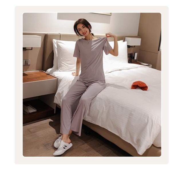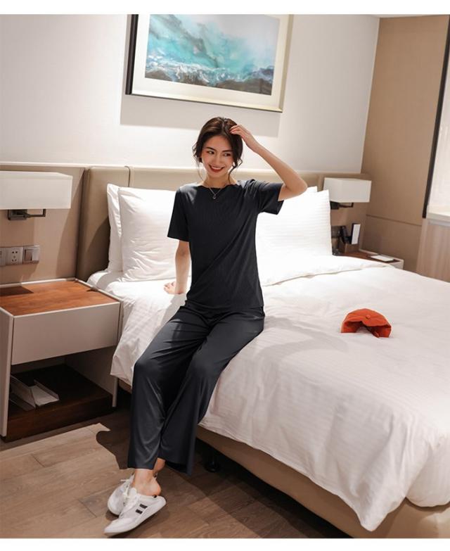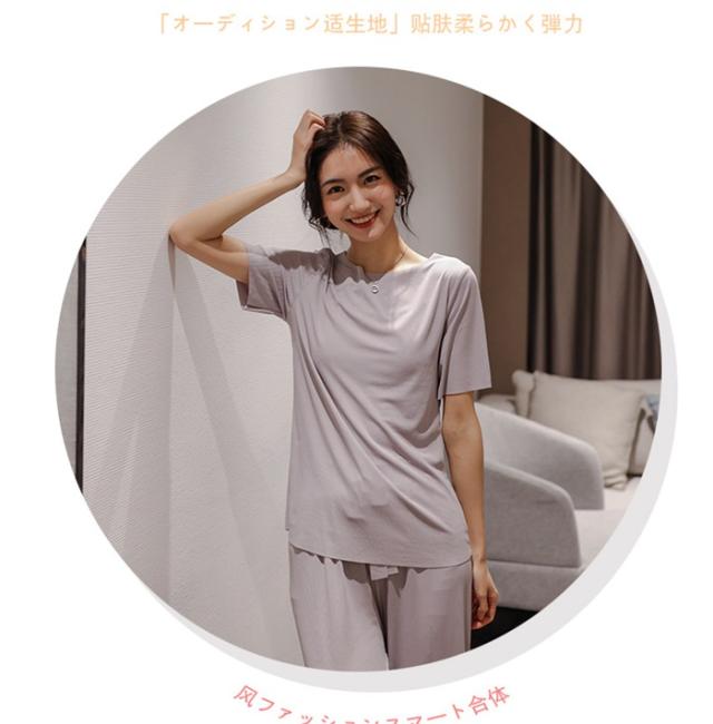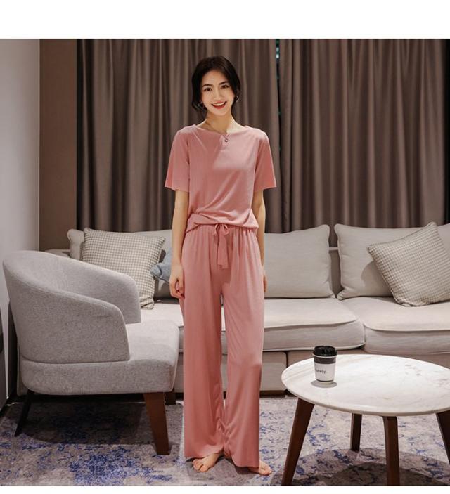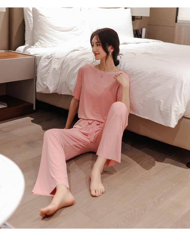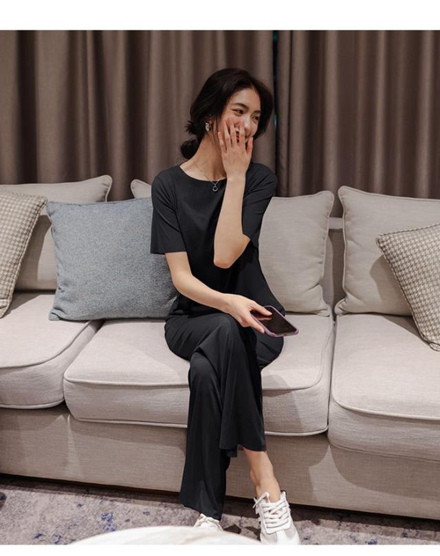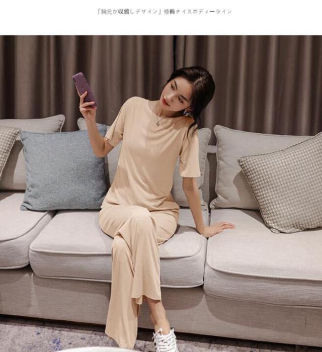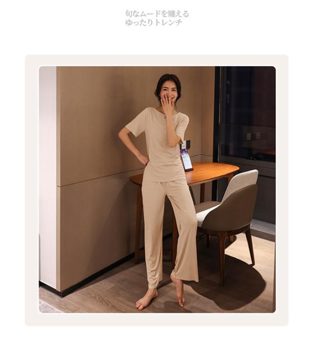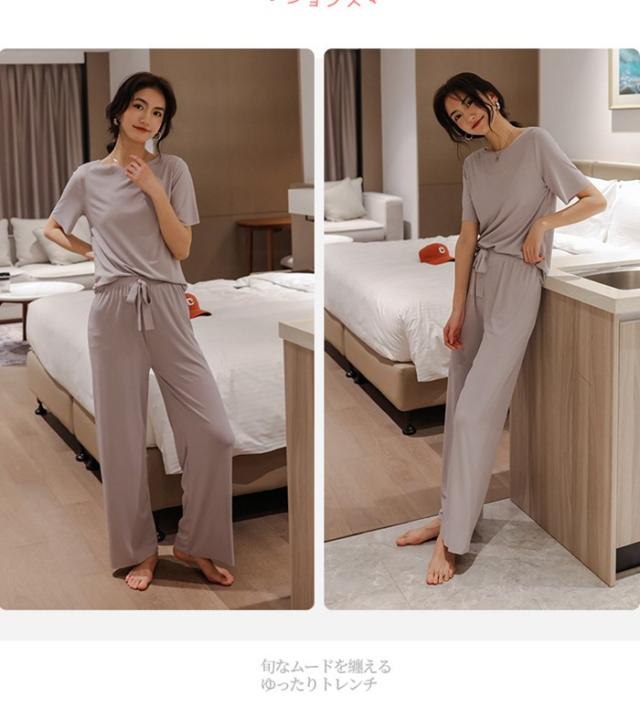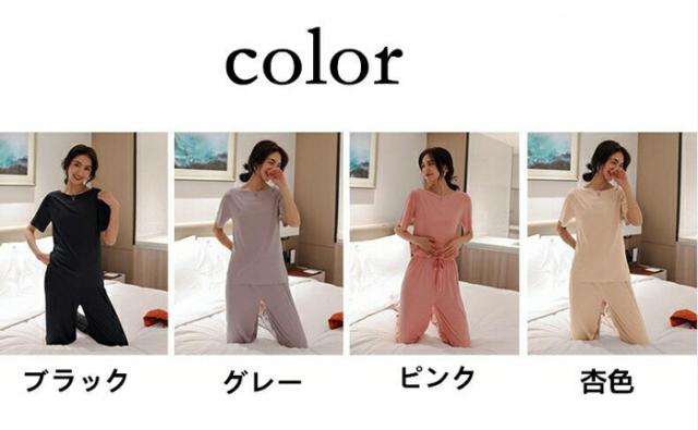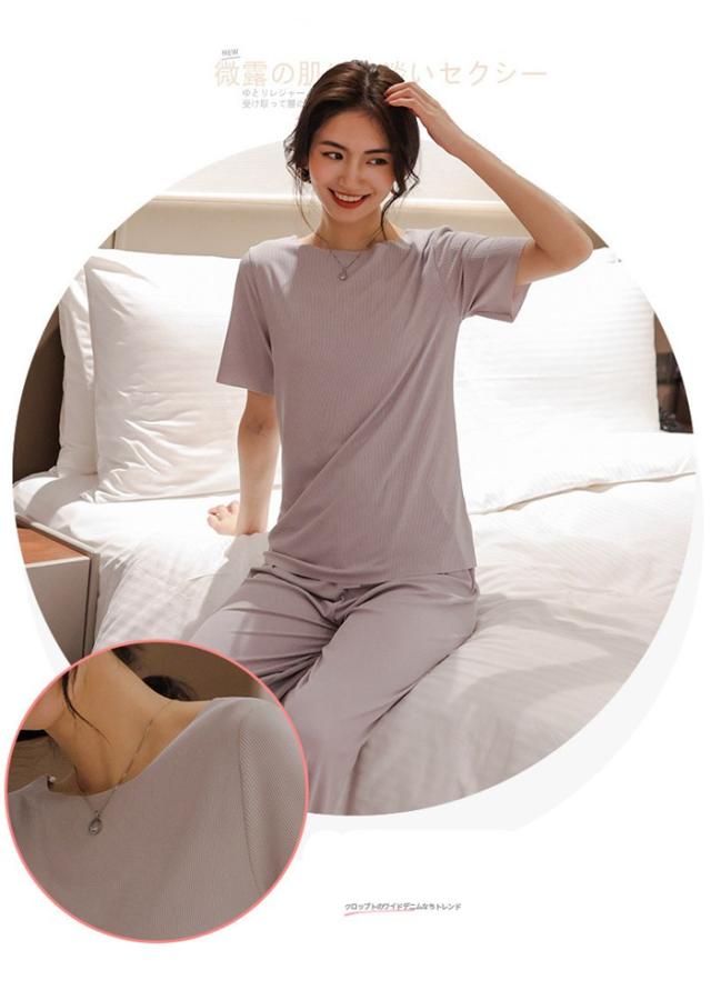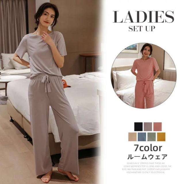 ルームウエア セットアップ 2点セット 冷感パジャマ レディース Tシャツ ガウチョパンツ ロング 吸汗速乾 着痩せ 体型カバー 薄手 部屋着 ゆったり 可愛い 春夏ファッション