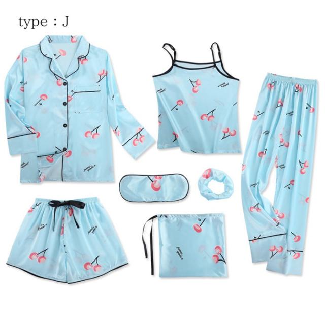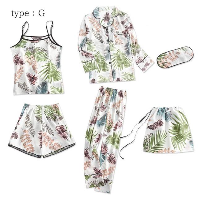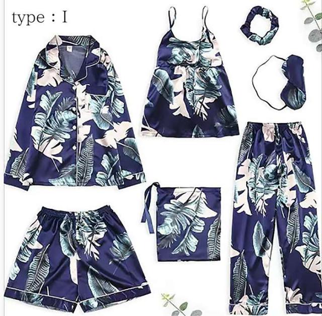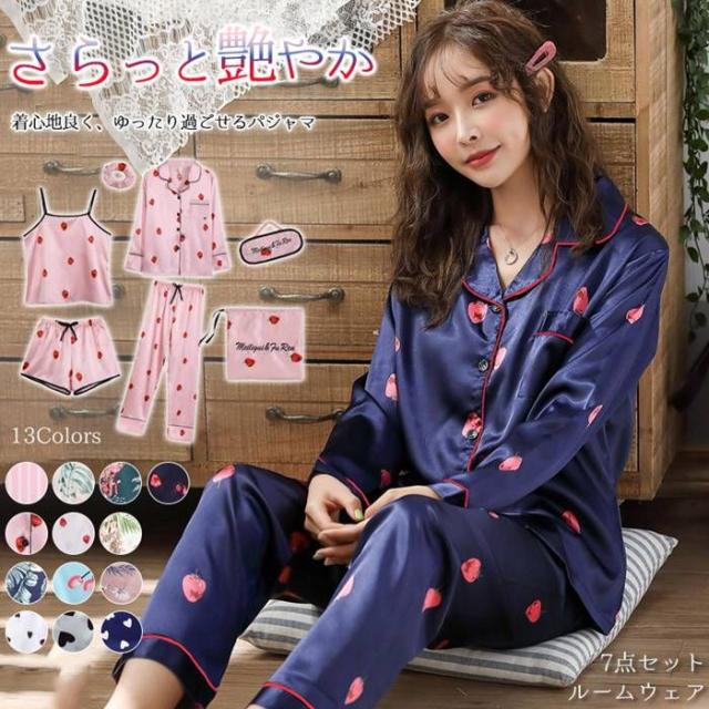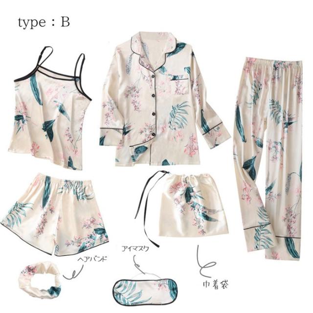 ルームウェア レディース おしゃれ 7点セット 長袖 大人 前開き 可愛い お洒落 ゆったり 薄手 部屋着 寝巻き 羽織 部屋着 花柄 パジャマ 寝間着 ロングガウン キャミソール 上下セット ナイトウェア セットアップ
