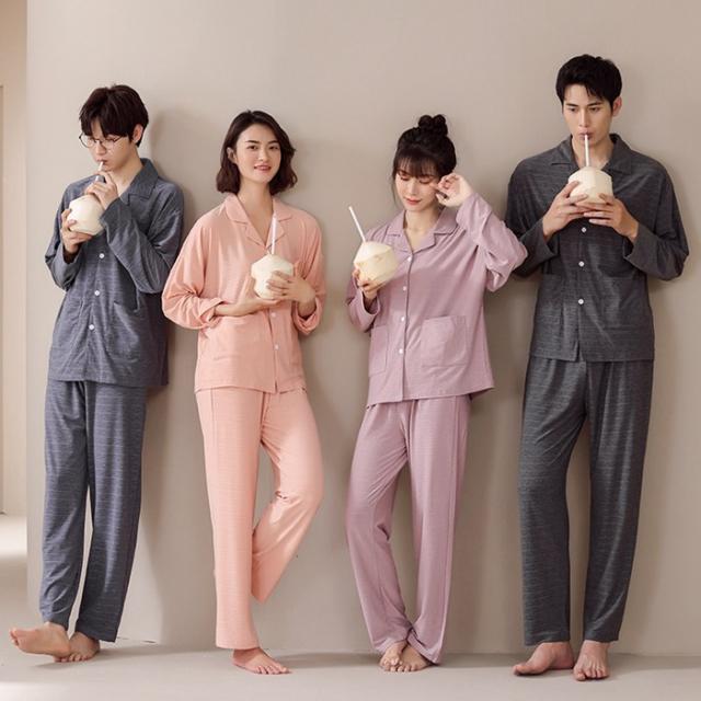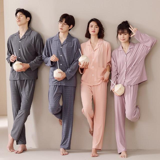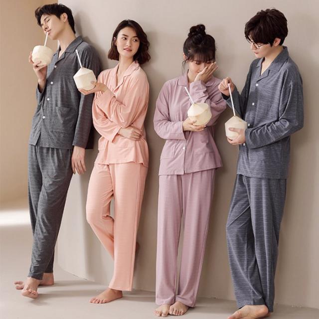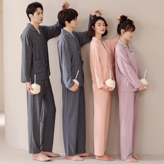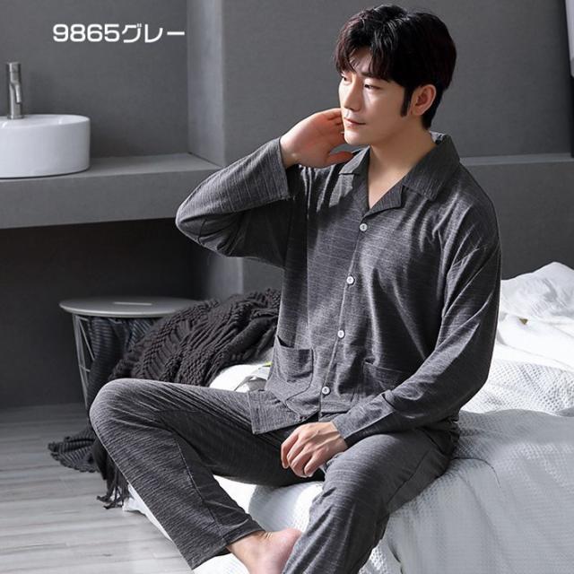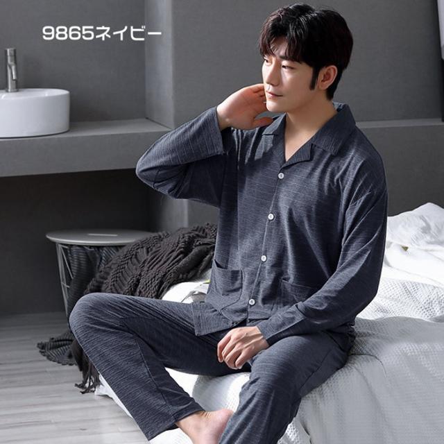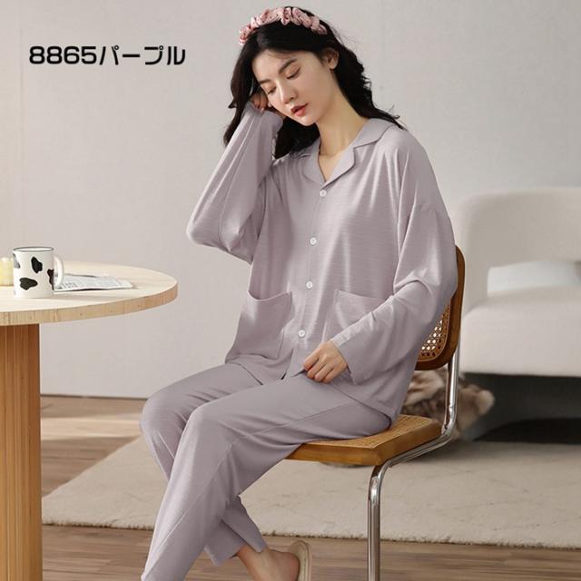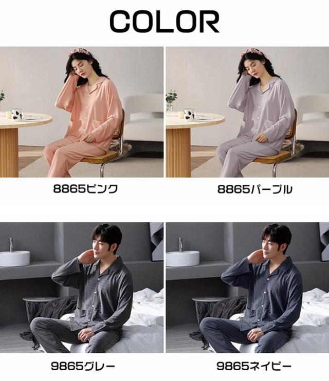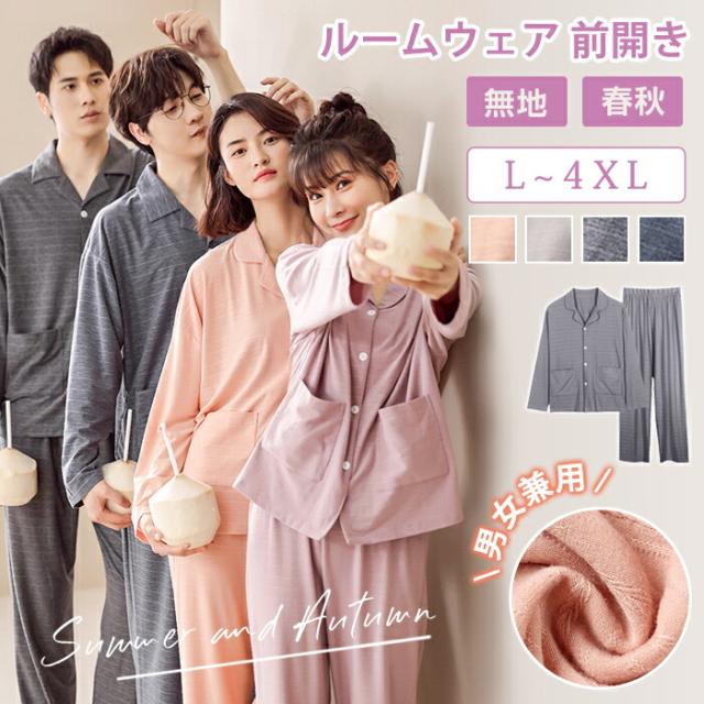 パジャマ ルームウェア セットアップ 上下セット 無地 前開き 春秋 長袖 男女兼用 メンズ レディース 柔らか 長ズボン シャツ