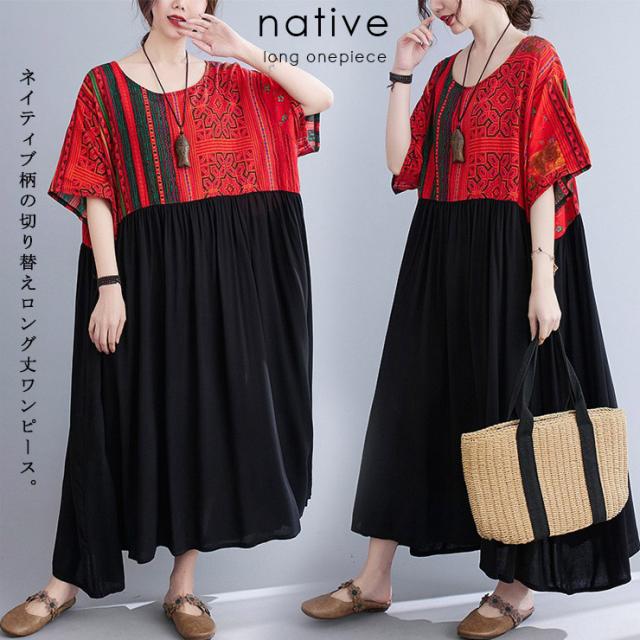 | 商品名 | ネイティブ柄切り替えワイドワンピース |
