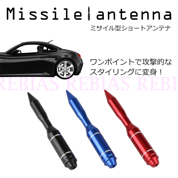 ミサイル型 ショートアンテナ 攻撃的なデザインがかっこいい ミサイル型アンテナ! ワンポイントのアクセントに! バリバリエアロ車にももちろん合います!