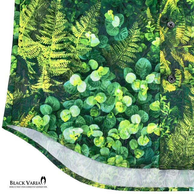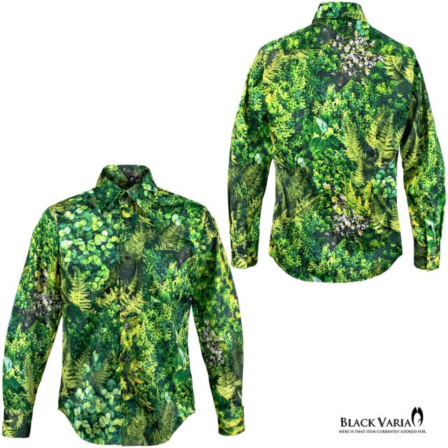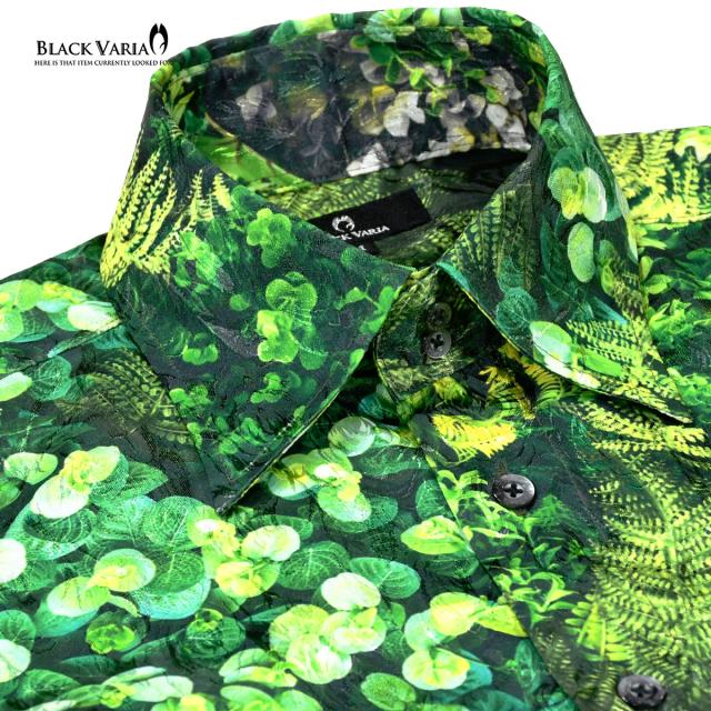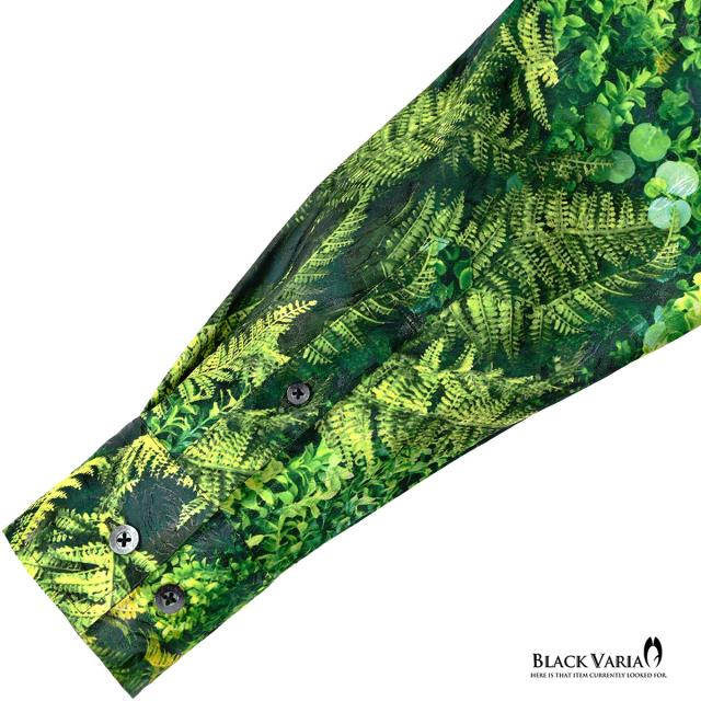 サテンシャツ ドゥエボットーニ ボタニカル柄 ドレスシャツ レギュラーカラー ジャガード パーティー メンズ mens(グリーン緑) 211800