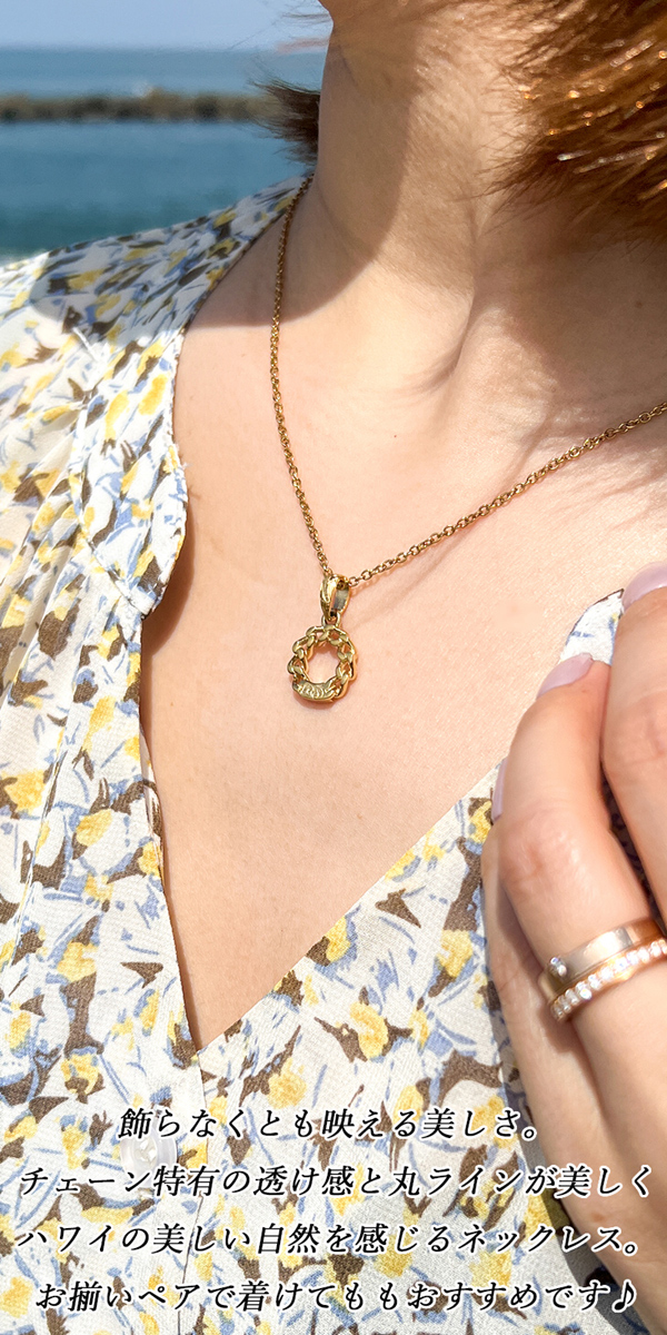 ハワイアンジュエリー ネックレス チェーン サークル 波 スクロール 金属アレルギー対応 サージカル ステンレス ギフト インスタ sale ラッピング対応