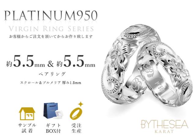 プラチナ ペアリング 2本セット ハワイアンジュエリー 刻印 無料 誕生石入れ可 結婚指輪 マリッジリング 4号〜29号 太め 幅約5.5mm 厚み1.8mm プラチナ950 PT950 白金 ギフトBOX付き ピンキーリング 大きいサイズ 指輪 カップル プレゼント 【品番:PSR202P】