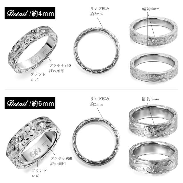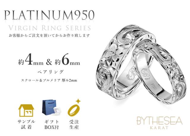 ヴァージンリング ハワイアンジュエリー プラチナ950 ペアリング ヘビーウェイト 約4mm幅&約6mm幅 指輪