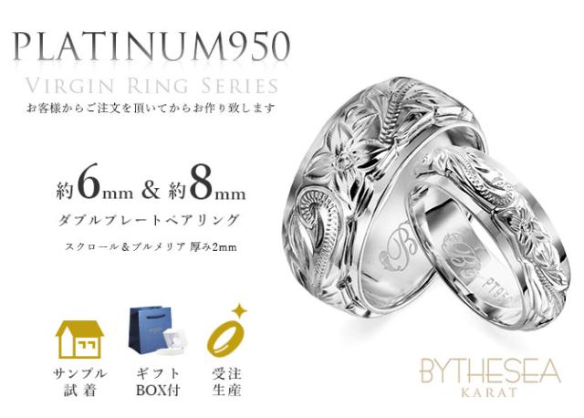 ヴァージンリング ハワイアンジュエリー プラチナ950 ペアリング ダブルプレート 約6mm幅&約8mm幅 指輪
