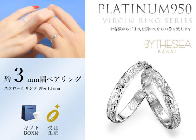 ペアリング 2本セット ハワイアンジュエリー リング プラチナ 刻印 無料 指輪 1号〜19号 幅約3mm ギフトBOX付き 小さいサイズ 2個ペア ヴァージンリング リング カップル 夫婦 プレゼント バレンタイン 【品番:PGMR1018P】