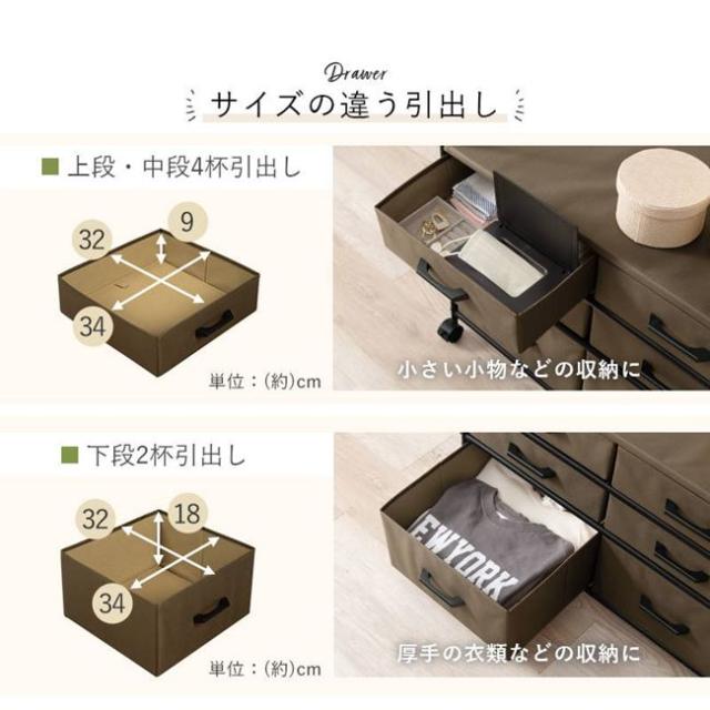 ●靴下やインナー、季節ものなどを分けて収納できる便利な6杯の引き出し付き。