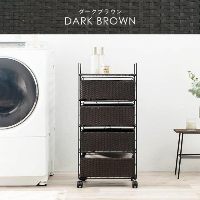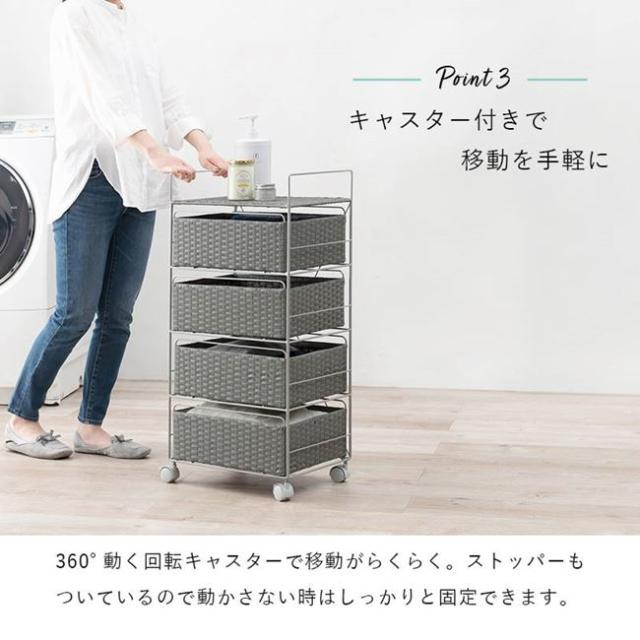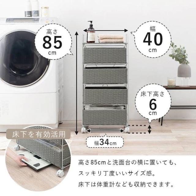 ランドリーラック ランドリーチェスト ラタン調 幅40cm 引き出し収納4段 キャスター付き