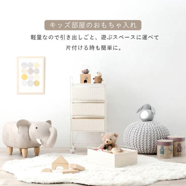 ●ラタン調のデザインが色々なシーンで活躍。リビングでソファ横の収納棚として置いたり、子供部屋などにもおすすめです。