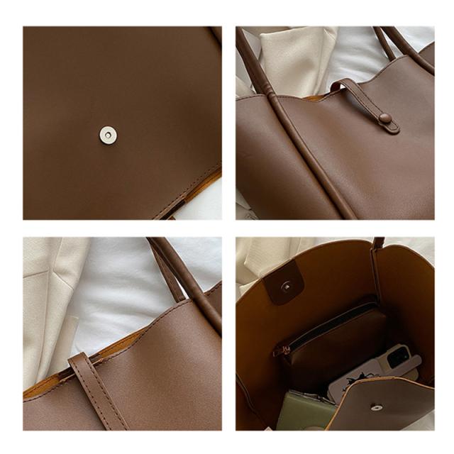 トートバッグ PUレザー 革 レディース 親子バッグ 2個 マグネット開閉 手提げ 大容量 バッグ 可愛い シンプル 通勤 通学