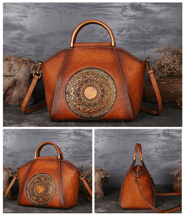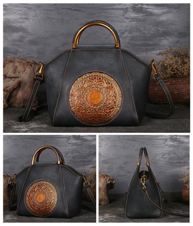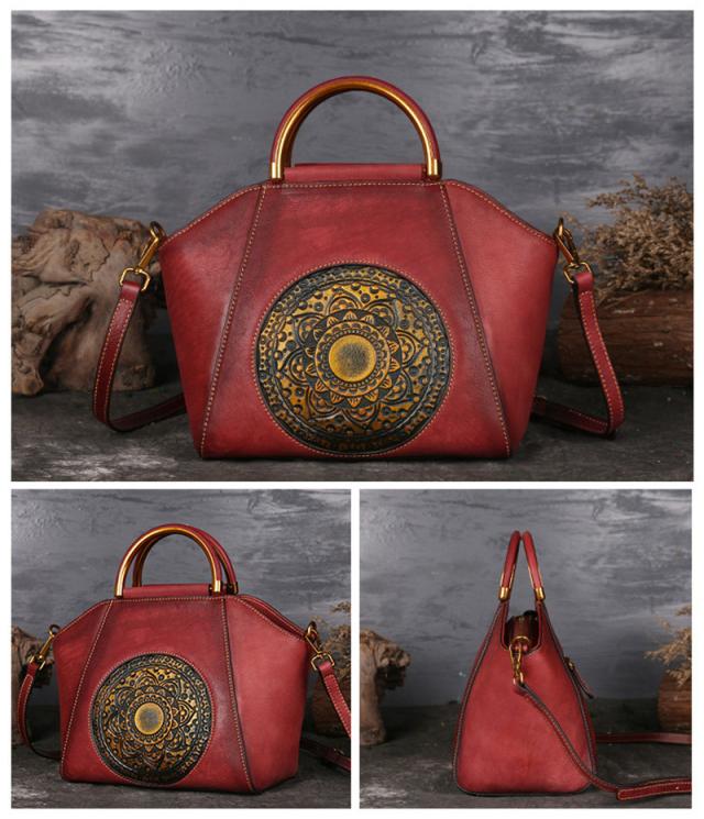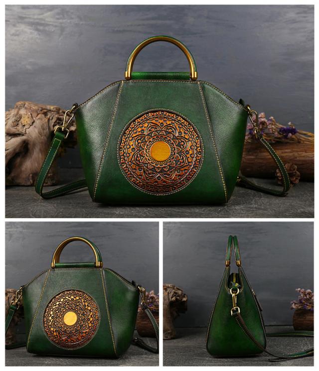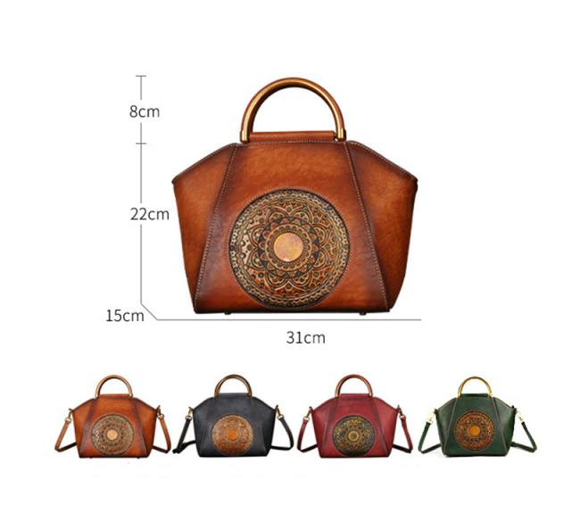 ハンドバッグ トートバッグ ショルダーバッグ 本革 レディース 2way 斜めがけ 牛革 彫刻花柄 大容量 バッグ 可愛い 軽量