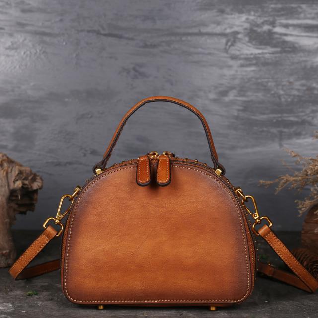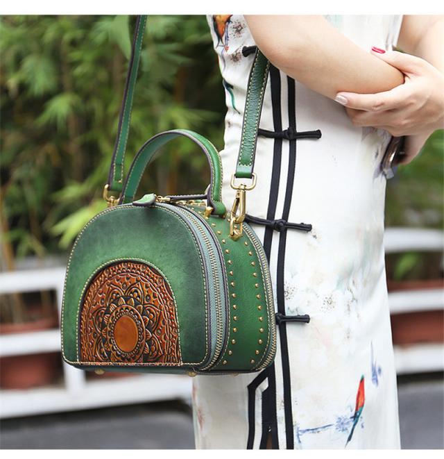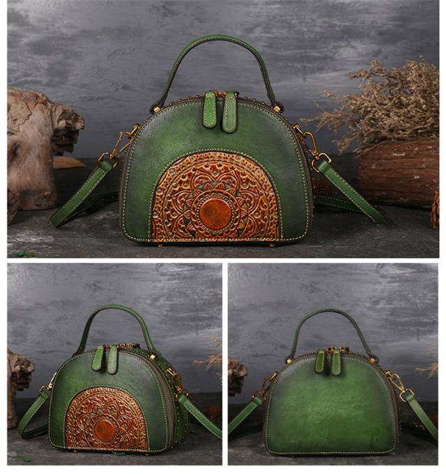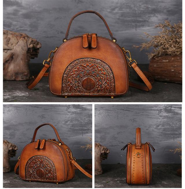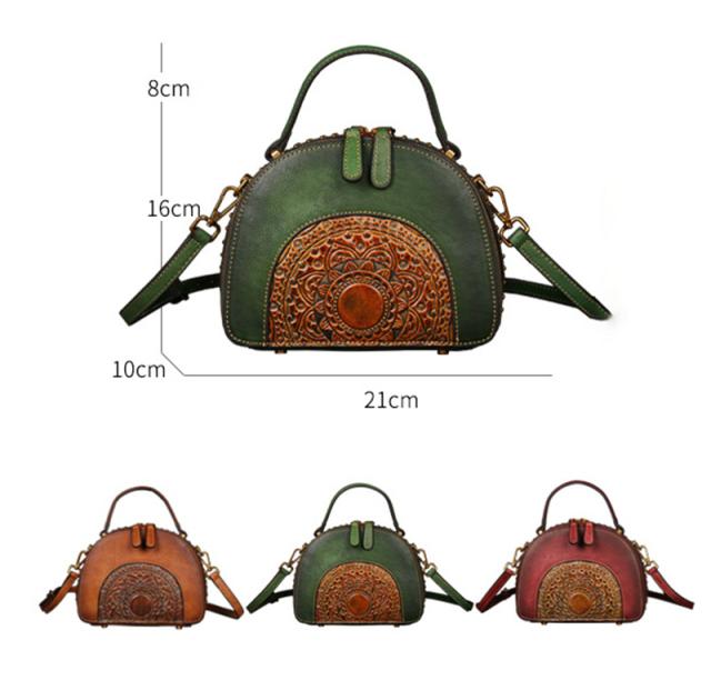 ハンドバッグ トートバッグ ショルダーバッグ 本革 レディース 2way 斜めがけ 牛革 彫刻花柄 ギョーザバッグ 可愛い 軽量