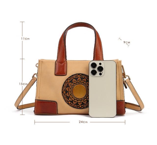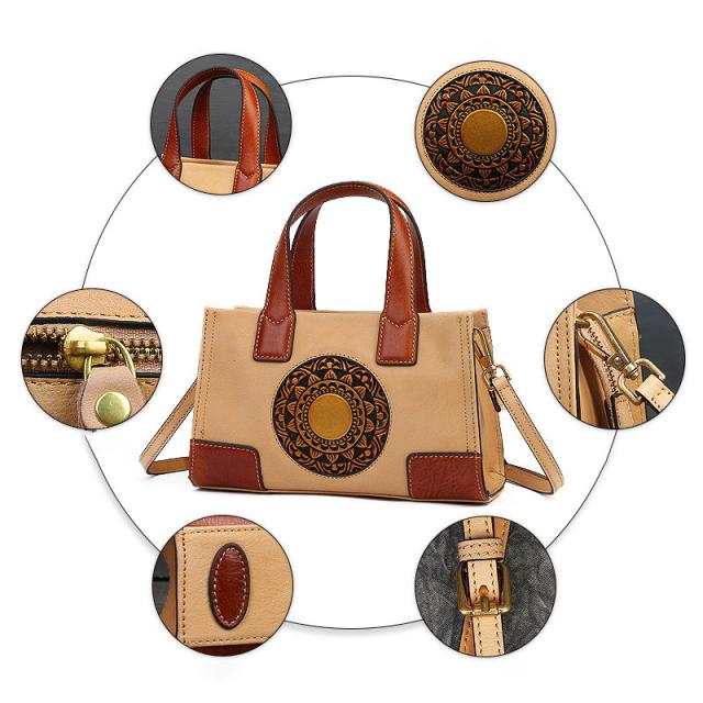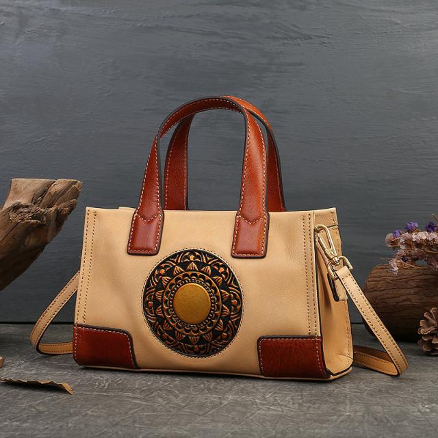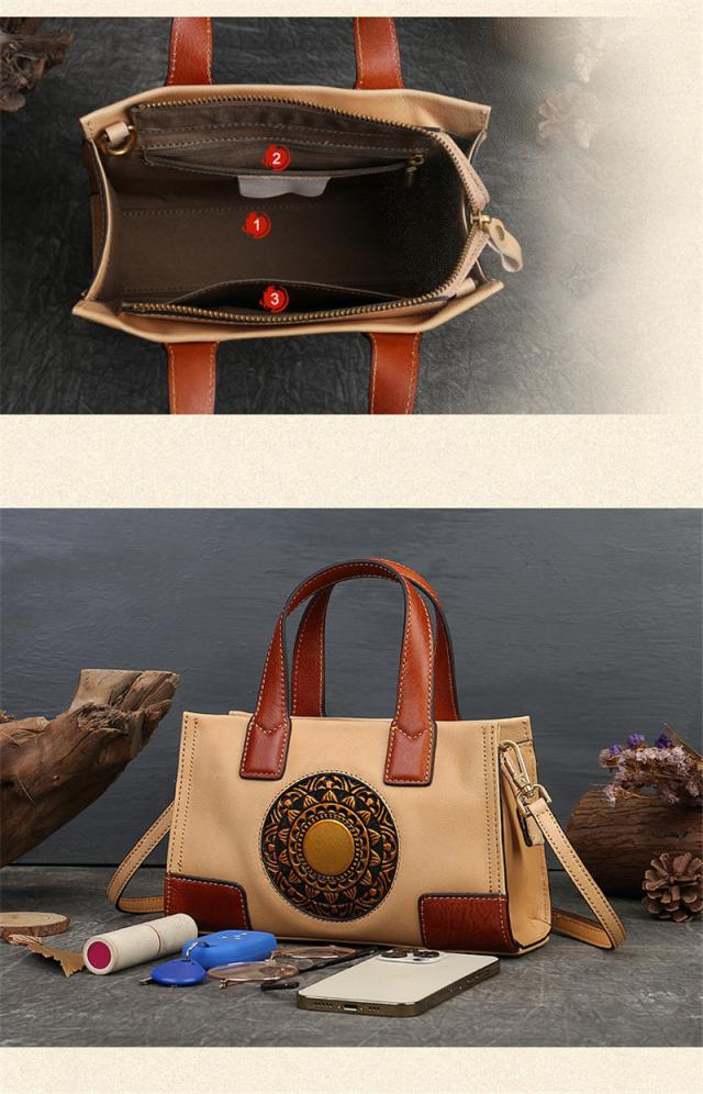ハンドバッグ トートバッグ ショルダーバッグ 本革 レディース 2way 斜めがけ 牛革 彫刻花柄 大容量 バッグ 可愛い 軽量