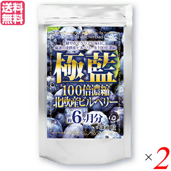 【3/22(日)限定!ポイント5%+日曜5%】ビルベリー ルテイン サプリ 極藍100倍濃縮北欧産ビルベリー 大容量 360粒 約6ヵ月分 2個セット 送料無料