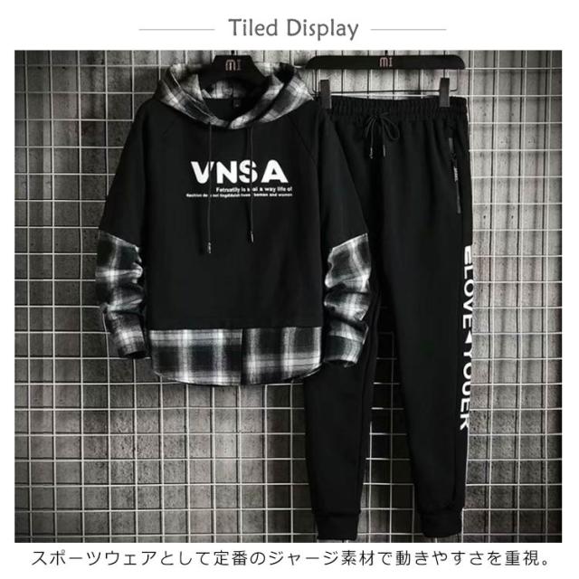 | トラックタイプのパーカーセットアップ。 スポーツウェアとして定番のジャージ素材で動きやすさを重視。 更にカジュアルにも着こなせるようにデザイン性も加えました。 動きやすくシンプル、なのにオシャレ。 リブ仕様の袖と裾は防風性能も高く、腕や足にぴったりフィット。 サイズはM〜3XLと大きめでご用意致しました。 部屋着から普段着、トレーニングやランニング、ダンスなど幅広く活用できる便利なアイテム! | |
