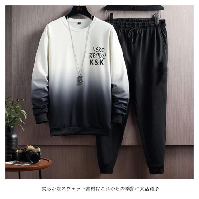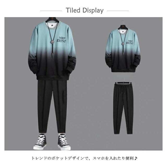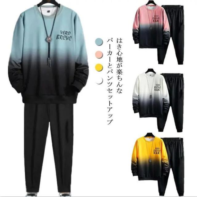 パーカー パンツ 2点セット メンズ 長袖パーカー グラデーション 切り替え スウェットパーカー ロングパンツ セットアップ 上下セット パーカーセット カジュアルセットアップ ルームウェア 部屋着