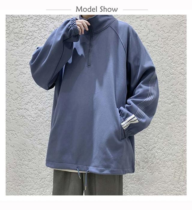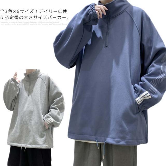 全3色×6サイズ!立ち襟パーカー パーカー メンズ プルオーバーパーカー ハーフジップ プルオーバー スウエット トップス 大きサイズ 無地 男性用 春 秋 送料無料