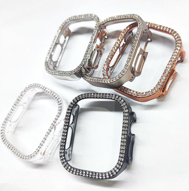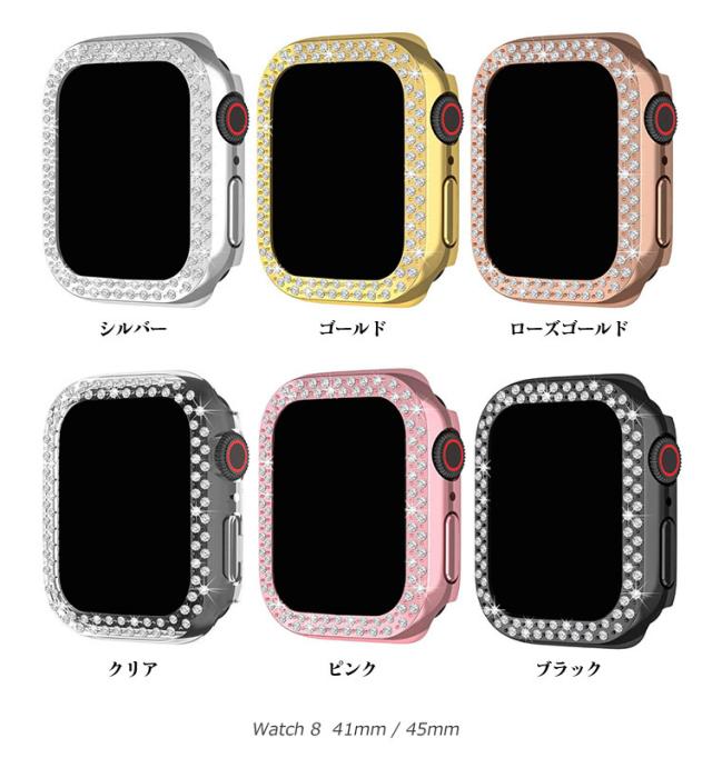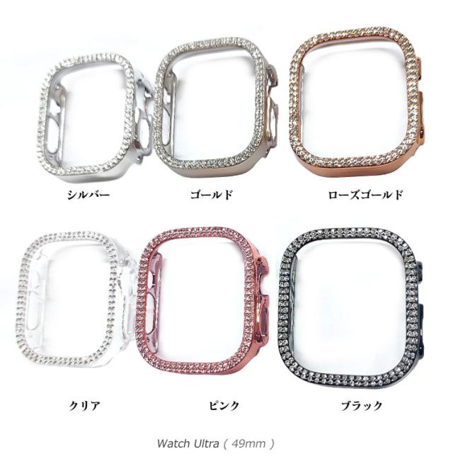 Apple Watch Series 9/8/7/Ultra 2/1 ケース カバー メッキ ラインストーン きらきら かわいい 可愛い インスタ映え ハードケース アップルウォッチ シリーズ9/8/7/ウルトラ2/1 41mm/45mm/49mm クリアカバー ハードケース