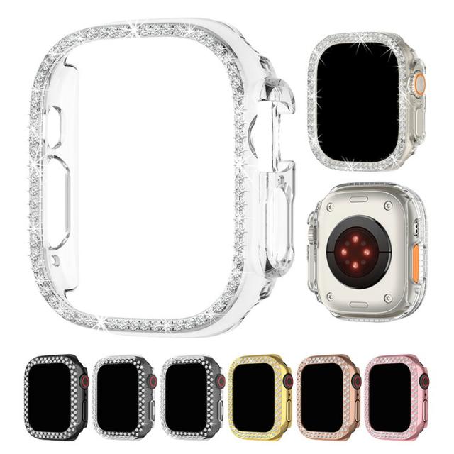 Apple Watch 9 Apple Watch 8 Apple Watch 7 アップルウォッチ9 アップルウォッチ8 アップルウォッチ7 41mm 45mm Apple Watch Ultra 2 Apple Watch Ultra アップルウォッチウルトラ2 アップルウォッチウルトラ 49mm ケース / カバー ラインストーン + プラスチック (PC) ハードケース ハードカバー 透明 可愛い おすすめ appleウォッチ applewatch