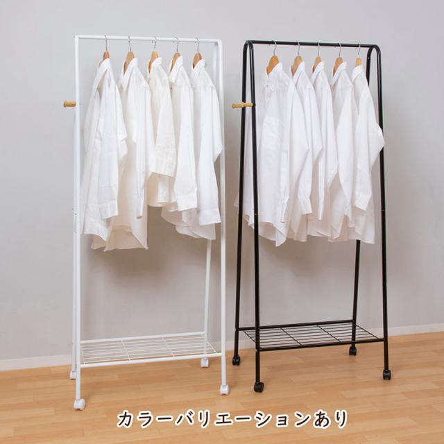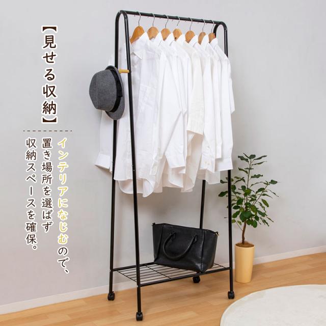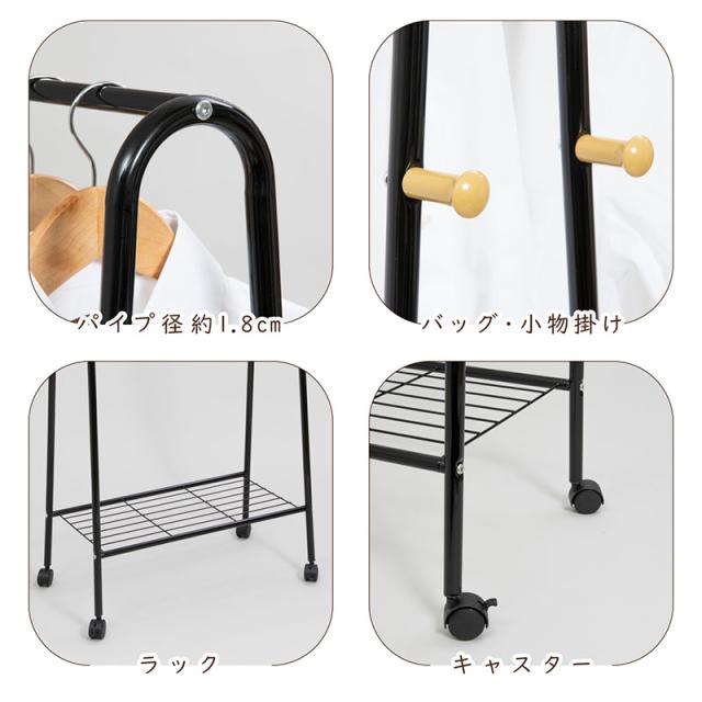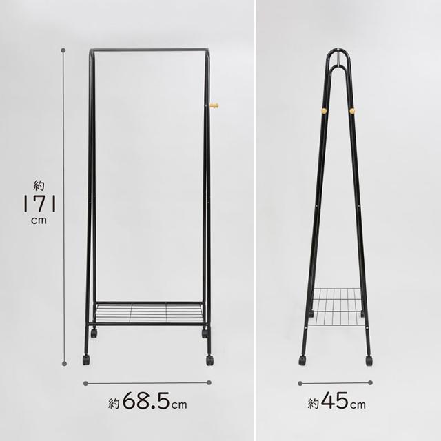 商品名:ラック付ハンガーラック 黒 幅68.5cm