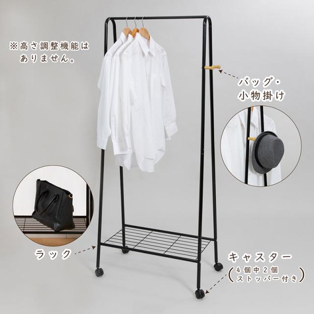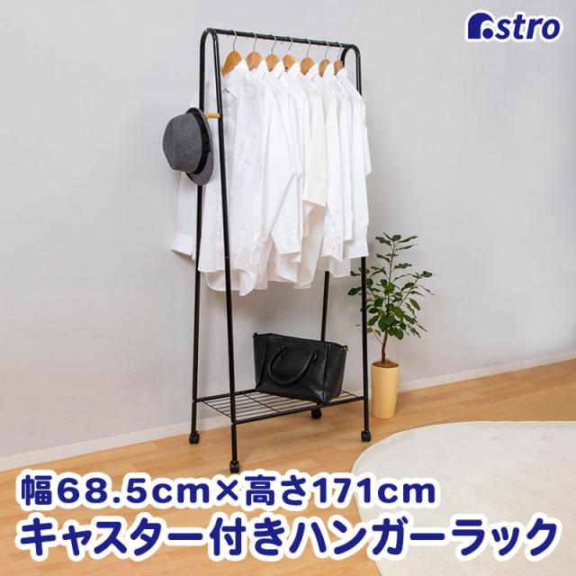 ハンガーラック ブラック シングル キャスター付き 約幅68.5×奥行45×高さ171cm 洋服ラック 小物掛けフック アストロ 731-26