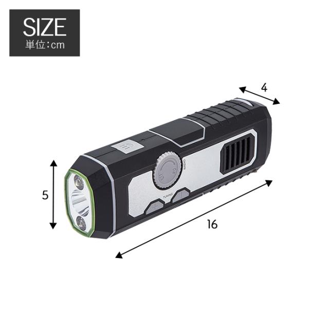 | [ダイナモ(1分間充電)]ライト15分、FMラジオ10分、AMラジオ10分、サイレン5分 [充電方式]ダイナモ充電、USB充電 |