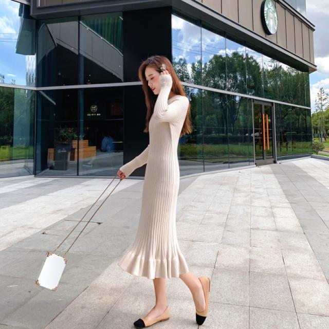 ニットワンピース 冬 レディース ドロングワンピース 長袖 Aライン ゆらり ストレッチ インナー 100cm ニットワンピ