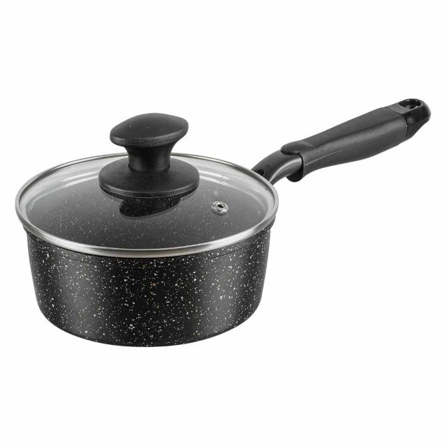 片手鍋 16cm IH対応 ガラス蓋付き 軽量 ダブルマーブル ( ガス火 IH ih 対応 小鍋 ソースパン フタ付き ガラス蓋 フッ素樹脂加工 片手なべ 調理鍋 16センチ ダブルマーブルコーティング マーブルコーティング 蓋付き 調理器具 )
