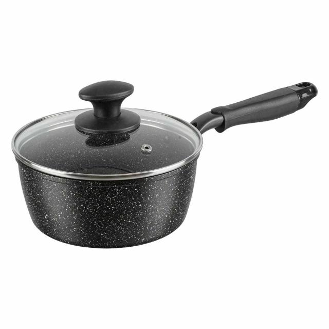片手鍋 18cm IH対応 ガラス蓋付き 軽量 ダブルマーブル ( ガス火 IH ih 対応 片手なべ 鍋 フタ付き ガラス蓋 フッ素樹脂加工 調理鍋 18センチ ダブルマーブルコーティング マーブルコーティング マーブル加工 蓋付き 調理器具 )