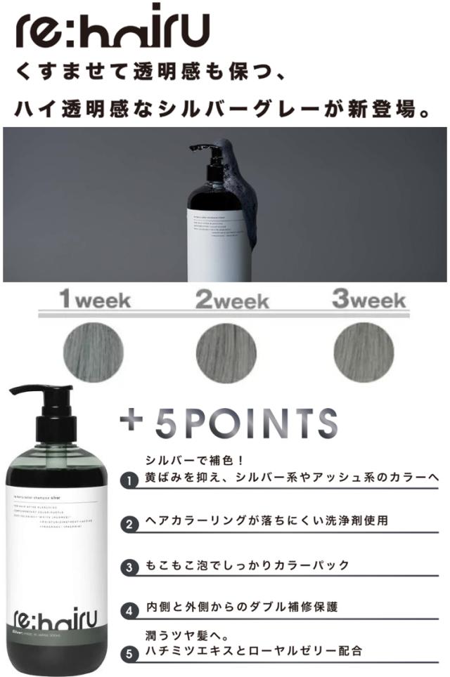 ★ セット販売 【正規販売店】 リハイル カラー シャンプー シルバー 500ml + トリートメント シルバーグレー 150ml カラーケア ヘアカラー ヘアトリートメント 銀 アッシュ ブリーチ ケア 色落ち 防止 rehairu