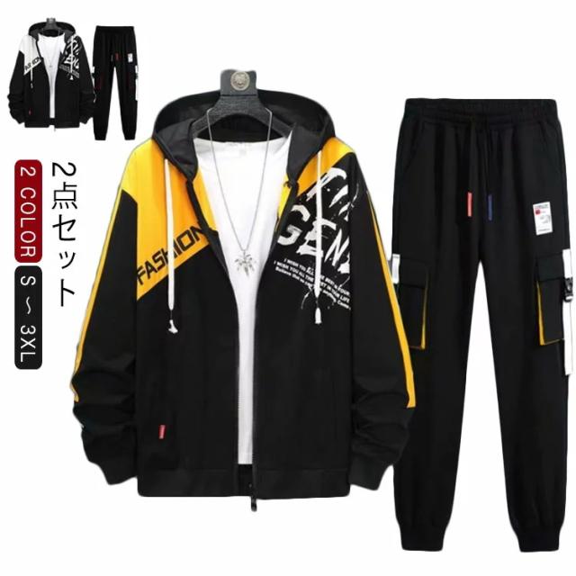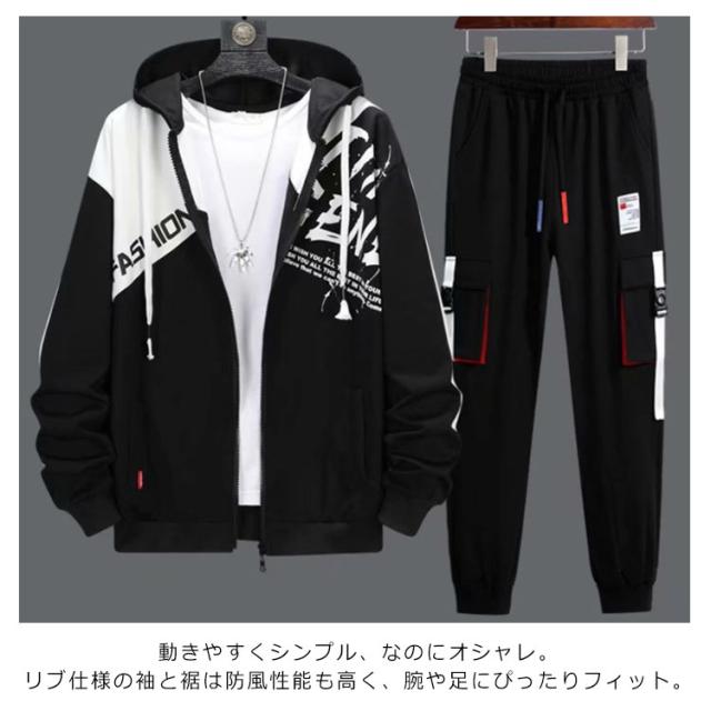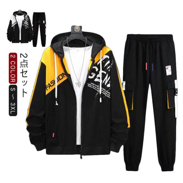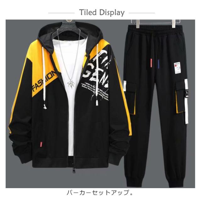 | パーカーセットアップ。 スポーツウェアとして定番のジャージ素材で動きやすさを重視。 更にカジュアルにも着こなせるようにデザイン性も加えました。 動きやすくシンプル、なのにオシャレ。 リブ仕様の袖と裾は防風性能も高く、腕や足にぴったりフィット。 サイズはM〜3XLと大きめでご用意致しました。 部屋着から普段着、トレーニングやランニング、ダンスなど幅広く活用できる便利なアイテム! | |