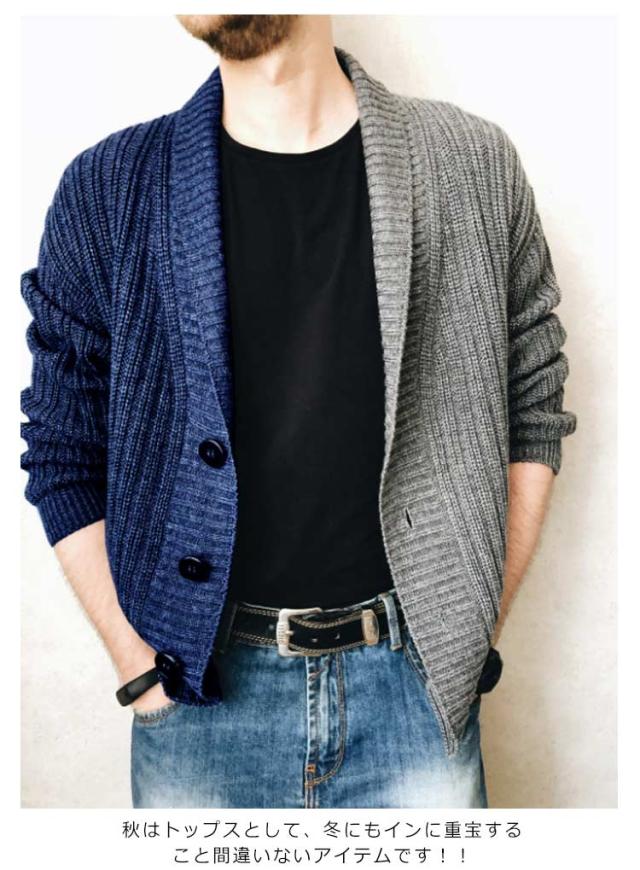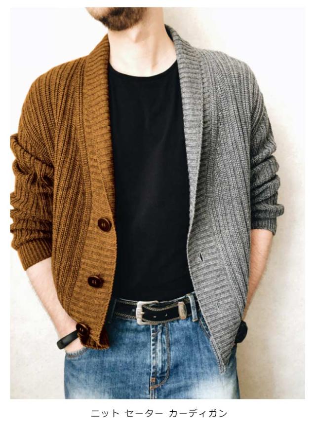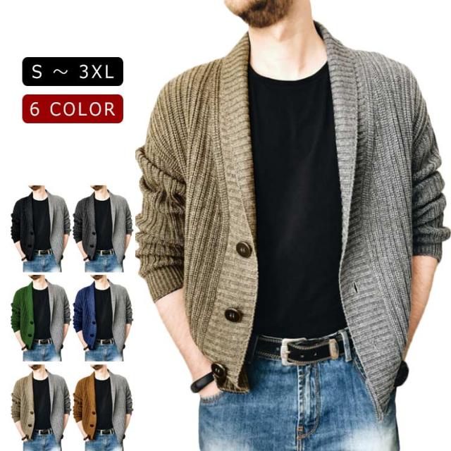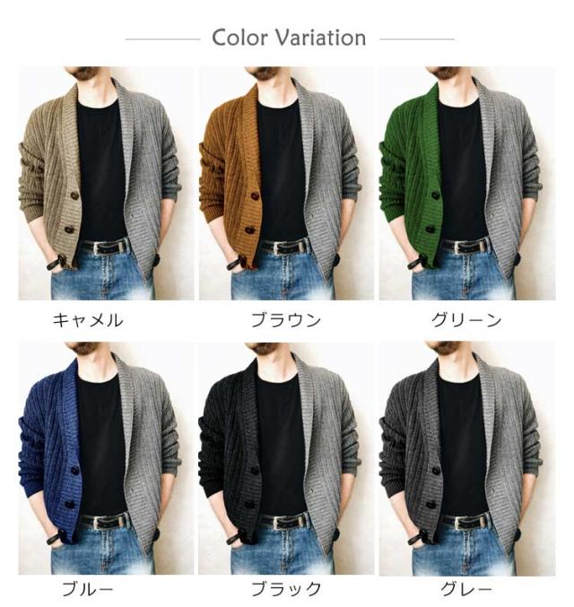 カーディガン メンズ ニット ニットカーディガン ショールカラー 無地 リブ バイカラーニット カーディガン 長袖 セーター メンズ ケーブルニット ニットジャケット アウター 秋冬 春物 春服 キャメル グリーン ブルー ブラック ブラウン グレー