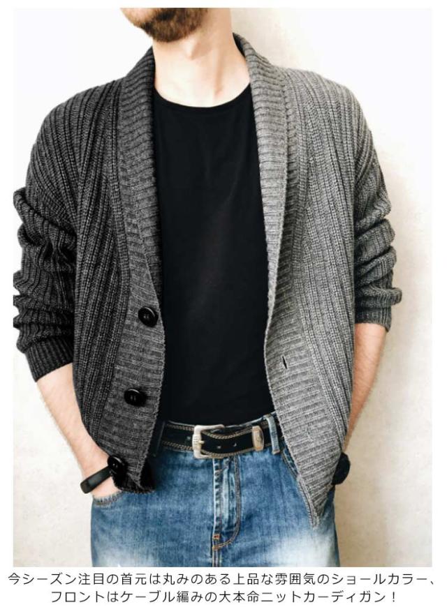 | ニット セーター カーディガン 今シーズン注目の首元は丸みのある上品な雰囲気のショールカラー、フロントはケーブル編みの大本命ニットカーディガン! ボタンにはバスケットボール釦を使用でアクセント!特殊編み立て機を使用した着心地もバツグン! 秋はトップスとして、冬にもインに重宝すること間違いないアイテムです!! 数にも限りが御座いますのでぜひこの機会に! | |