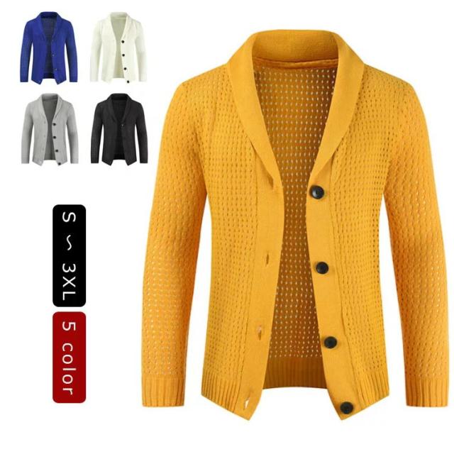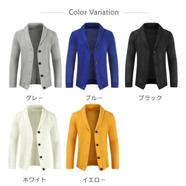 カーディガン メンズ ニット ニットカーディガン ショールカラー 無地 リブ ニット カーディガン 長袖 セーター メンズ ケーブルニット ニットジャケット アウター 秋冬 春物 春服 ホワイト イエロー グレー ブラック ブルー