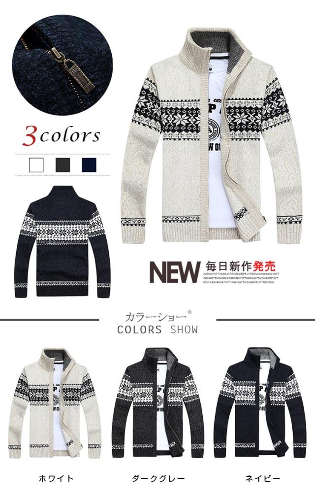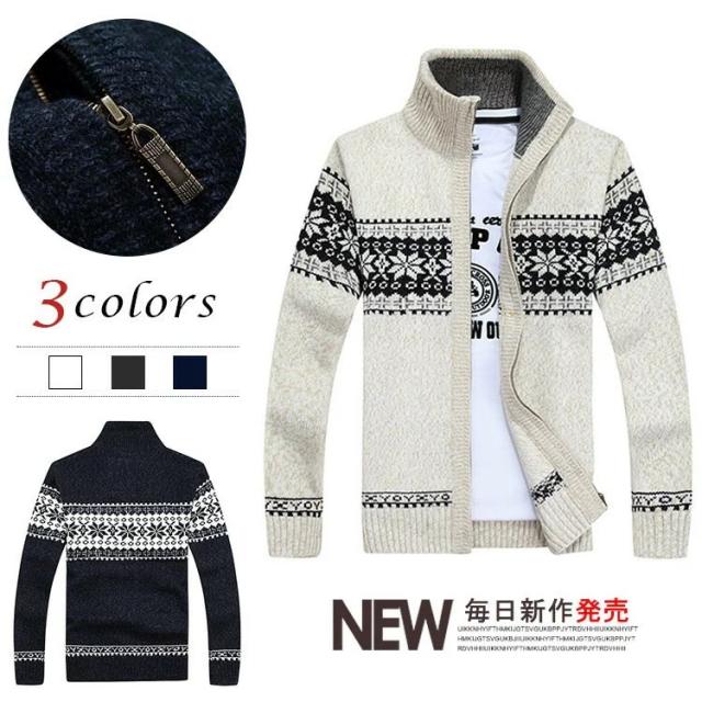 メンズ ニットカーデ ニットセーター カウチンセーター あったか 厚手 保温 防寒着 ビジネス スリム