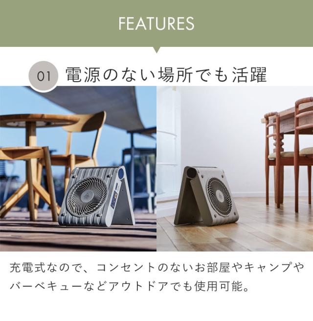 充電式で電源のないお部屋やアウトドアでも使える扇風機です。