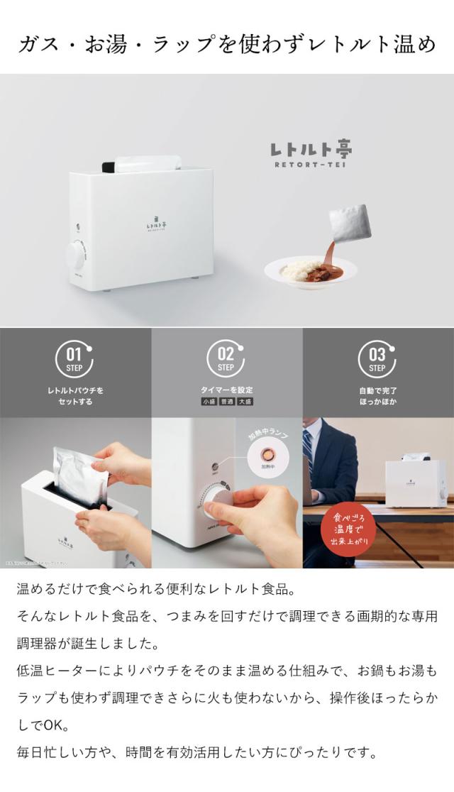 レトルト 温める 家電 レトルトウォーマー レトルト食品 パウチ 食品 レトルト専用調理器 レトルト亭 時短 調理 ラク 自動 ガス レンジ ラップ 不要 一人暮らし 安心 タイマー カレー パスタ 丼 スープ おかゆ 介護食 簡単 安全