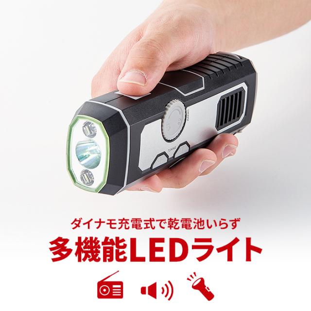 | ラジオ付きポータブルマルチライト ラジオ 災害時 避難用 防災対策 懐中電灯 LED サイレン機能付き FMラジオ AMラジオ ダイナモ充電式 USB充電 |