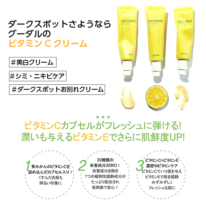 ●塗るたびにくすん肌を明るい肌印象に!グーダル グリーンタンジェリン ビタC クリームセット。