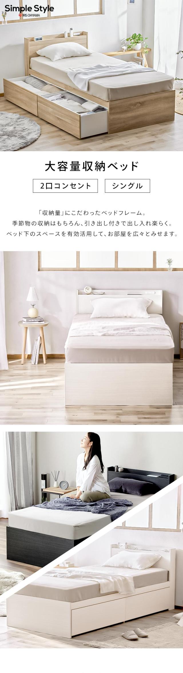 ベッド 収納付き シングル すのこベッド 大容量収納 すのこ 小さめ ベッドフレーム 寝具 布団 ふとん 子供部屋 子ども部屋 一人暮らし 1人 ひとり 宮付き S DSBM-S マットレス ヘッドボード コンパクト アイリスオーヤマ 新生活