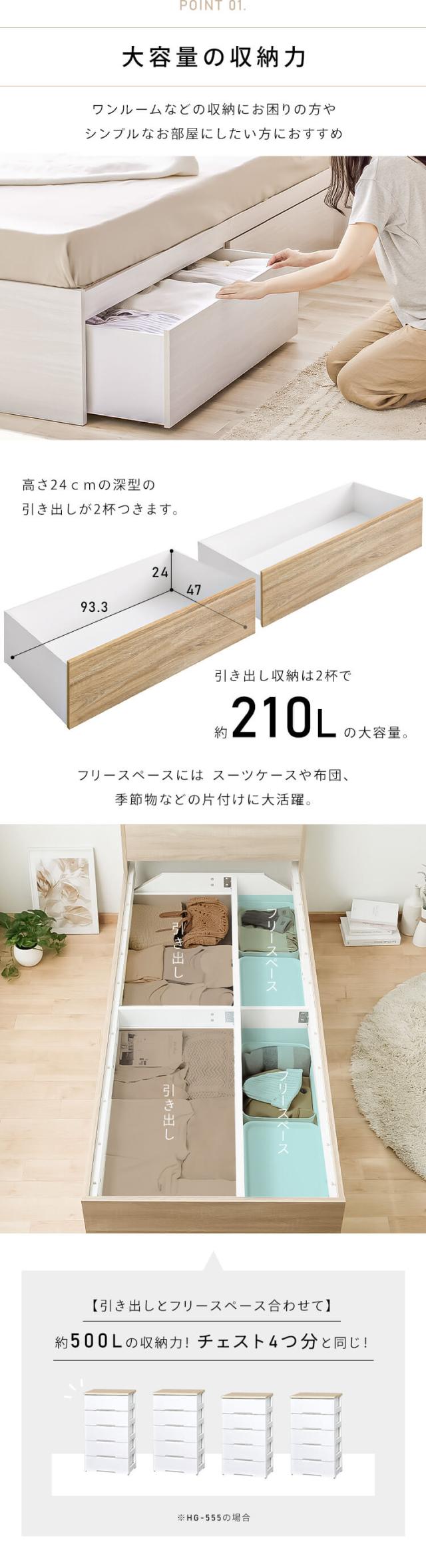 「収納量」にこだわりをもった、引き出し付の大容量収納ベッド。