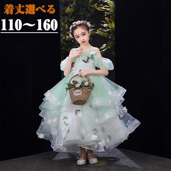 キッズ ドレス 蝶々柄 花柄 ピアノ発表会 ワンピース 女の子 袖あり ロングドレス 子供ドレス 演奏会 グリーン 編み上げタイプ キッズドレス 160 キッズ用 上品 エレガント 結婚式 子供 小さいサイズ 110 七五三 ピアノ発表会 中学生 ワンピース フォーマルドレス パーティードレス 発表会 子供服da128g5g5la