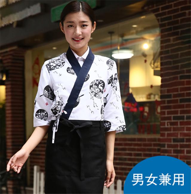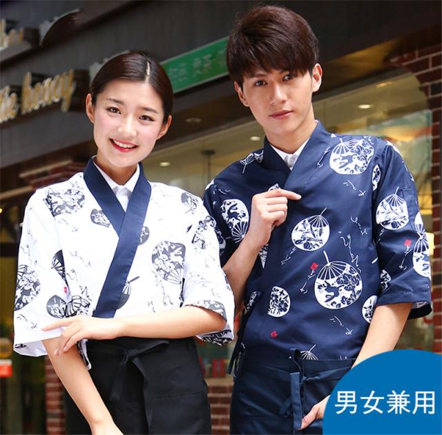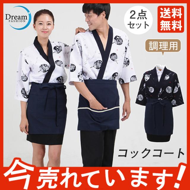 コックコート メンズ レディース 男女兼用 コック服 調理服 半袖 2点セット エプロン 和風 飲食店 トップス 厨房 調理用