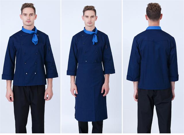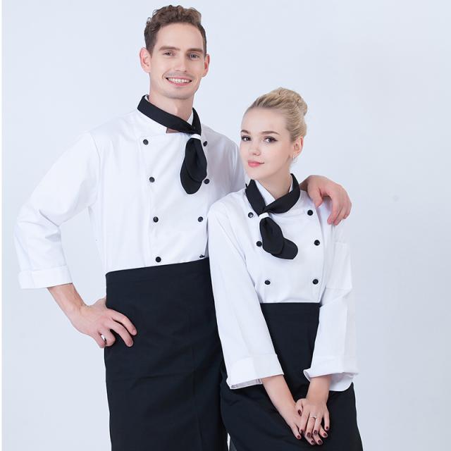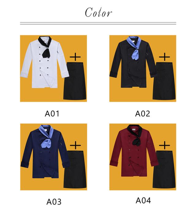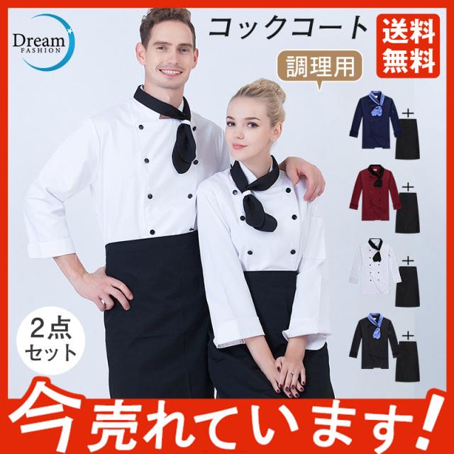 コックコート メンズ レディース 男女兼用 コック服 調理服 2点セット エプロン 長袖 制服 パン屋 ケーキ屋 飲食 レストラン