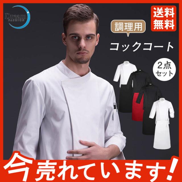 コックコート メンズ レディース 男女兼用 コック服 調理服 2点セット エプロン 調理用 7分丈袖 飲食 レストラン 高級感 パ