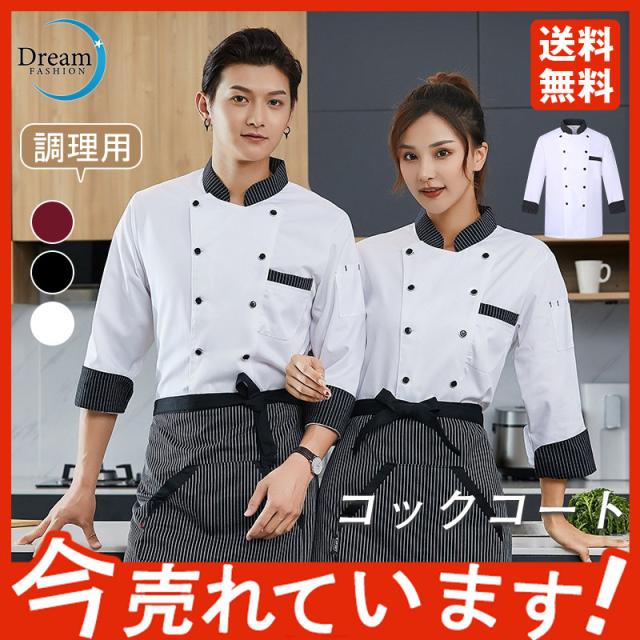 コックコート メンズ レディース 男女兼用 コック服 調理服 送料無料 半袖 七分袖 コックシャツ ユニフォーム 制服 レストラン