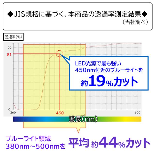 | 商品詳細 ブルーライトカットメガネ PCメガネ ih9497 ラウンドシェイプを4カラー、スクエアシェイプを4カラーご用意。 レディース、メンズともにユニセックスでお使いいただけます。 頻繁にパソコンやスマホをお使いの方、テレワーク、オンライン授業をされている方、 また、屋外での紫外線対策におすすめです。 ◎ブルーライトとは? 電磁波の一種である光には波長があり、波長の長さによって光の色の見え方が変わります。 ブルーライトと呼ばれるのは約380nm〜500nmの波長で、紫外線に限りなく近い可視光線です。 ブルーライトを含むおよそ350nm〜800nmの波長は、目の角膜や水晶体を透過し、目の奥まで届きます。 中でも450nm付近のブルーライトはLED光線で最も強く、人体へ影響を及ぼすと懸念されています。 ◆ブルーライトカット クリアレンズはブルーライト領域 380nm〜500nmを平均約44%カット。 ※JIS規格 に基づく測定結果 | |