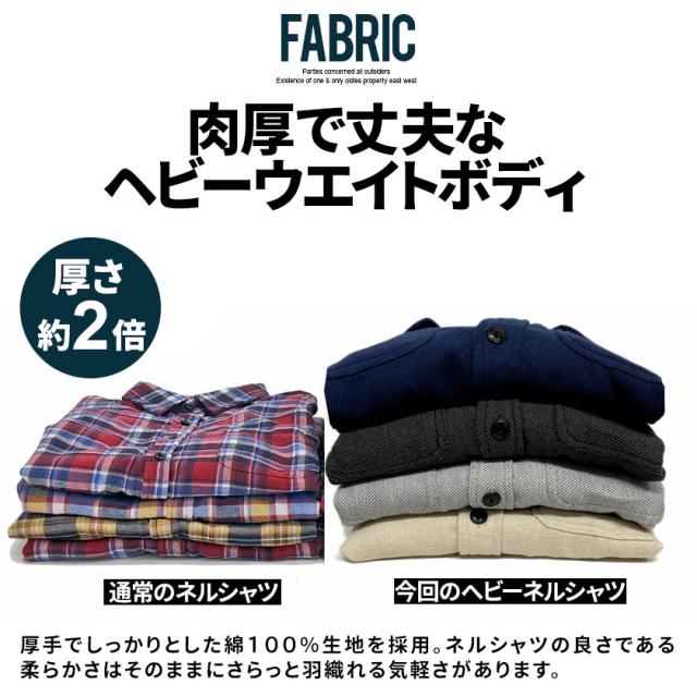 素材は肉厚なインド産コットン100%のヘビーフランネル生地を使用し、アウター感覚で着られるネルシャツジャケットです。