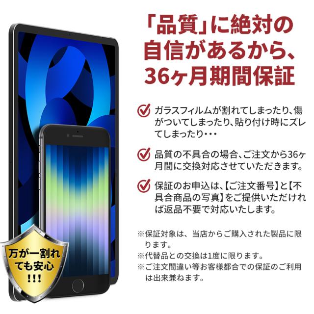 - ガイド付きで貼りやすく、画面を拭く道具も入っていてとてもいい。保証も長く、安心して使えます。